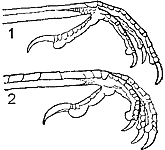 Рис. 1. Лапа рябинника (1); щитки на передней стороне цевки