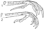 Цевка сзади с острым ребром, так как два больших продольных щитка, тянущихся во всю длину цевки, соединяются здесь под острым углом (рис. 1.2).